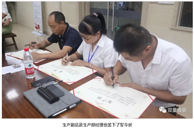 2019年8月20日,在"雙童"推動(dòng)企業(yè)改革后的第一次員工大會(huì )上,口杯技術(shù)班組長(cháng)張德勝鄭重地簽下了口杯技術(shù)班組的軍令狀,承諾在2019年8月1日至2019年12月31日期間,克服一切困難,全力以赴、不找借口,保證完成公司預定的產(chǎn)能目標,未達成目標則自愿接受所有懲罰。