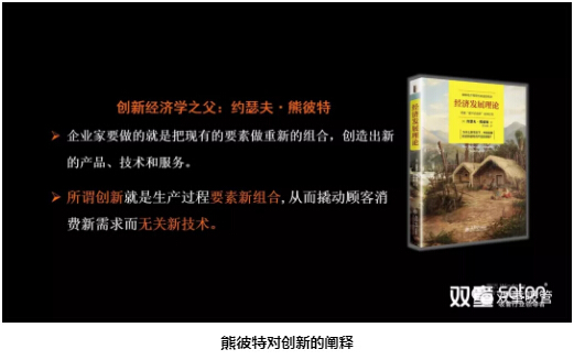 創(chuàng )新經(jīng)濟學(xué)之父約瑟夫·熊彼特,曾在其著(zhù)作《經(jīng)濟發(fā)展理論》中對“創(chuàng )新”做了重新定義:所謂創(chuàng )新就是生產(chǎn)過(guò)程中的要素新組合,從而撬動(dòng)顧客消費新需求而無(wú)關(guān)新技術(shù)。企業(yè)家要做的就是把現有的要素做重新的組合,創(chuàng )造出新的產(chǎn)品、技術(shù)和服務(wù)。其本質(zhì)就是所謂的創(chuàng )新。