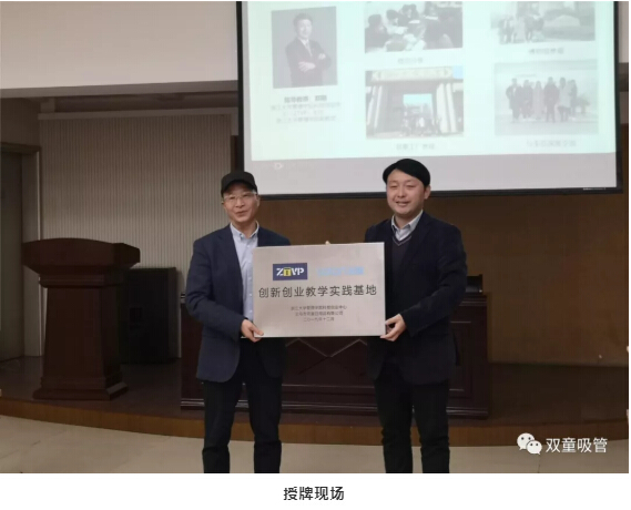 12月27日上午,在浙大MBA新動(dòng)力班移動(dòng)課堂的最后環(huán)節,舉辦了激動(dòng)人心的授牌儀式!浙江大學(xué)管理學(xué)院科技創(chuàng )業(yè)中心(ZTVP)主任、浙江大學(xué)管理學(xué)院副教授鄭剛老師向雙童進(jìn)行了授牌,將雙童作為創(chuàng )新創(chuàng )業(yè)教學(xué)實(shí)踐基地。鄭剛老師坦言:“雙童”是一家極其注重創(chuàng )新、有危機意識的企業(yè),這在制造業(yè)企業(yè)中是十分難得的。希望以后能夠與“雙童”加深合作交流,真正實(shí)現教學(xué)目標的產(chǎn)學(xué)研相結合,為企業(yè)的顛覆性變革賦能!