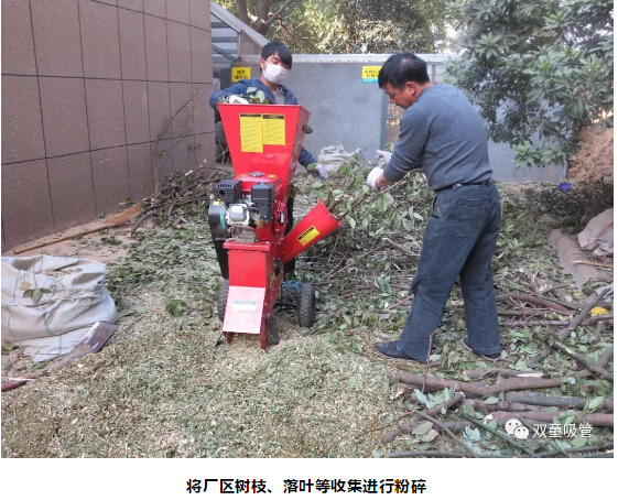 “雙童”的園林崗位配有兩到三人。他們負責將修剪綠化植物產(chǎn)生的樹(shù)枝、樹(shù)葉,用木條粉碎機粉碎。之后,碎末和部分廚余垃圾、柚子等一起,被投入堆肥發(fā)酵池。