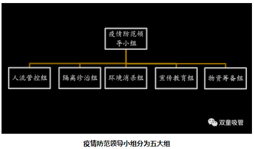 在巨大疫情防控壓力下,企業(yè)在復工前務(wù)必做好一系列的防疫工作部署。首先,“雙童”設立了防疫工作臨時(shí)指揮部,并即刻成立了以董事長(cháng)樓仲平為組長(cháng)的疫情防范領(lǐng)導小組,并明確具體防控工作的內容及責任人。