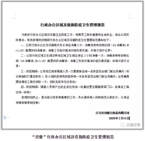 下面,讓我們一起來(lái)看看“雙童”在企業(yè)復工前做了哪些防控工作吧!