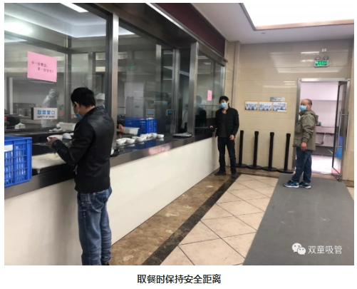 除了貼心的送餐服務(wù)外,未隔離的員工仍在餐廳就餐。但在疫情防控期間,“雙童”員工餐廳實(shí)行了封閉式管理,強化餐具、桌椅消毒,由專(zhuān)職人員引導員工在就餐前洗手消毒,分批次就餐。