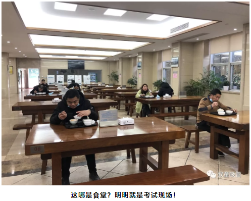 員工們在排隊取餐時(shí)需保持安全距離,就餐時(shí)禁止面對面用餐。瞧!這吃飯架勢真是吃出了考試的味道,不知道的還以為來(lái)了考場(chǎng)呢!