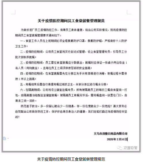 疫情防控不能松懈,發(fā)展改革不容停步。2月10日,“雙童”作為義烏第一批復工審批通過(guò)的工業(yè)企業(yè),將克服疫情帶來(lái)的負面影響,開(kāi)始逐步復工,做到疫情防控和生產(chǎn)復工兩不誤。