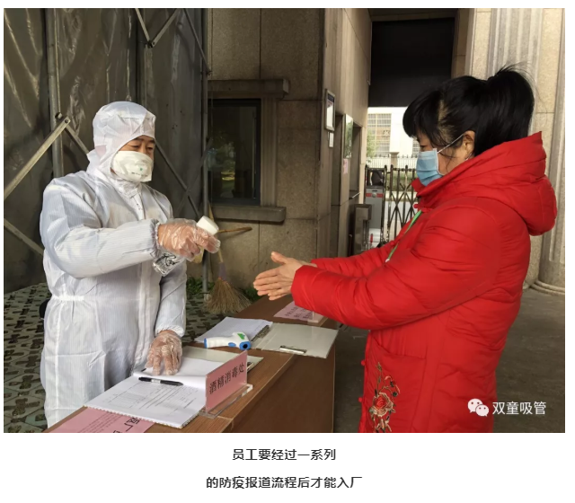 據悉,雙童吸管在復工前已做好一系列的防疫工作部署,并早早成立防疫工作臨時(shí)指揮部。對返工人員,“雙童”要求做到“一人一檔”,并全面摸清員工返崗前14天的外出情況、身體情況、返義時(shí)間和交通方式,及時(shí)向政府部門(mén)申報,且安排值班人員負責接站及引導工作。