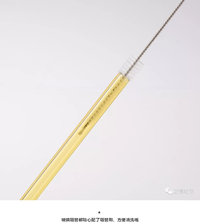 玻璃吸管該如何清洗呢?別急!別急!“雙童”玻璃吸管專(zhuān)門(mén)配套了毛刷,使用過(guò)后可以用毛刷清洗,如此便能循環(huán)使用哦!是不是超贊呢!