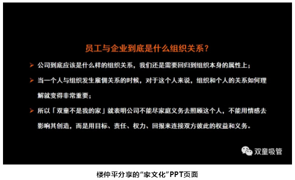 親愛(ài)的粉絲們,當你聽(tīng)到“公司就是我的家,持續發(fā)展靠大家”這樣的口號時(shí),是不是覺(jué)得很耳熟?長(cháng)期以來(lái),不少中國企業(yè)都通過(guò)這樣的口號來(lái)影響員工,提倡員工把公司當成自己的家,早期的“雙童”同樣也不例外。