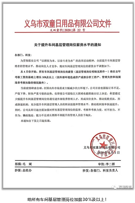 不僅如此,”雙童”在第二波改革推進(jìn)過(guò)程當中,明確給所有車(chē)間基層管理崗位加薪30%及以上,目的是為了吸引外部?jì)?yōu)秀的生產(chǎn)管理人才進(jìn)入,形成倒逼機制,推動(dòng)崗位競爭,解決組織效率低下、團隊老化的問(wèn)題,實(shí)現優(yōu)勝劣汰,從而讓用心做事的人得益,讓追求結果的奮斗者得到彰顯!