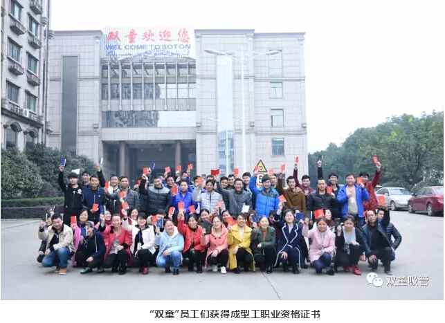除此之外,我們還為員工組織有針對性的職業(yè)培訓,讓員工們在本職工作上也有所提升。比如,針對成型工崗位,“雙童”在起草編制了《吸管成型工培訓教材》之后,就專(zhuān)門(mén)將此本教材形成PPT對員工進(jìn)行培訓和講解!如今,“雙童”已有100多位員工考取了成型工職業(yè)資格證書(shū),擁有了國家資質(zhì)認定!