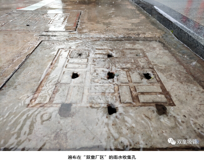 走進(jìn)“雙童”,雖然下雨會(huì )使整個(gè)廠(chǎng)區的路面濕漉漉的,但得益于布滿(mǎn)廠(chǎng)區的“雨水收集孔” ,所以并不會(huì )“發(fā)大水”!
