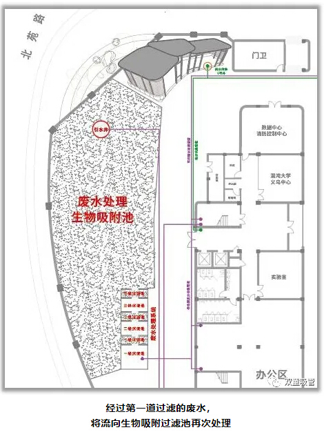 在這個(gè)過(guò)程中,員工日常生活中所產(chǎn)生的廢水過(guò)濾后,會(huì )流向生物吸附過(guò)濾池中,通過(guò)過(guò)濾池上栽種的樹(shù)木根須對水中的物質(zhì)、養分進(jìn)行再次吸附處理,這不僅能再次過(guò)濾處理廢水,同時(shí)也能樹(shù)木生長(cháng)的越來(lái)越好。