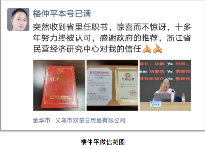 好消息!近日,“雙童”樓仲平被浙江省民營(yíng)經(jīng)濟研究中心聘請為副主席,以后將對我們浙江省的民營(yíng)經(jīng)濟發(fā)展做更多工作和貢獻,也能更好代表我們浙江企業(yè)主發(fā)聲提議,爭取推動(dòng)浙江民營(yíng)經(jīng)濟更好的發(fā)展!