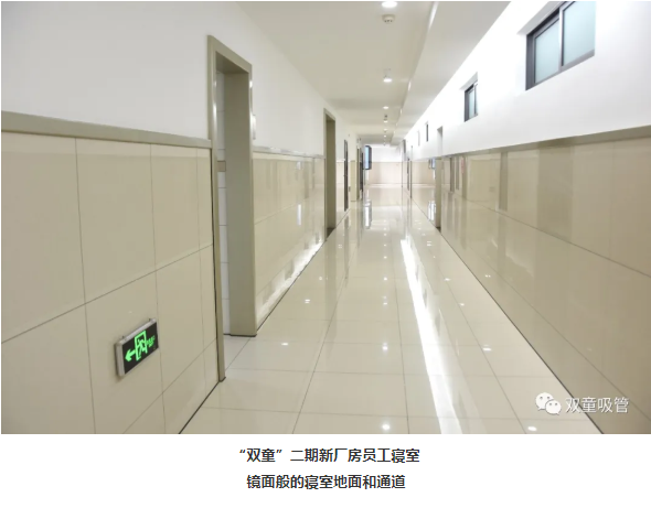 除了高品質(zhì)的建筑材料外,“雙童”二期新廠(chǎng)房的員工寢室硬件投入也是一步到位。在原先一期廠(chǎng)區的基礎上進(jìn)行了升級和優(yōu)化,配置了優(yōu)質(zhì)的寢室硬件:五星級酒店式的寢室大廳,自動(dòng)感應的玻璃門(mén)、所有衛生間配置科勒水龍頭……