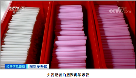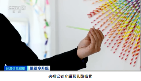 聚乳酸可降解吸管,是以玉米、甘蔗等作物為原料,經(jīng)過(guò)一系列復雜工藝生產(chǎn)而成。畫(huà)面中淺綠色的吸管就是其中之一,據介紹,它放在這里已經(jīng)20多天,表面已經(jīng)開(kāi)始漸漸分解。