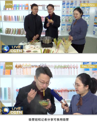 緊接著(zhù),吸管妞及“雙童”總經(jīng)理李二橋邀請了記者朋友現場(chǎng)體驗可食用淀粉吸管,將一把吸管直接放進(jìn)熱水里煮熟后現場(chǎng)吃掉,記者在品嘗后表示:非常美味哦!這一舉動(dòng)也引發(fā)了直播間網(wǎng)友們的熱議,許多網(wǎng)友紛紛表示:放下那根吸管,讓我來(lái)煮面條吧!