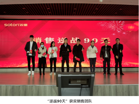 緊接著(zhù),“雙童”總經(jīng)理李二橋為“逆戰90天”獲獎銷(xiāo)售團隊進(jìn)行頒獎。這些優(yōu)秀團隊在“雙童”疫情危機之年勇挑重擔,甘當沖鋒兵,奮戰在銷(xiāo)售一線(xiàn),為公司開(kāi)辟出一條全新的道路。其中,餐飲組榮獲了30000多元的獎金,讓員工們羨慕不已!