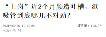 就在今天,新華社發(fā)表一篇《“上崗”近2個(gè)月頻遭吐槽,紙吸管到底哪兒不對勁?》文章,剛一發(fā)出,就獲得了100+萬(wàn)的瀏覽量!可以看出,社會(huì )大眾對奶茶與紙吸管的關(guān)注已經(jīng)到了空前程度。