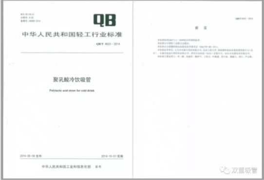 由“雙童”主導起草的《聚乳酸冷飲吸管》國家行業(yè)標準