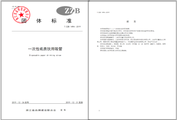 《一次性紙質(zhì)飲用吸管》浙江制造團體標準