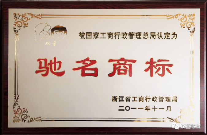 “雙童”商標榮獲國家工商總局認定的“中國馳名商標”稱(chēng)號,成為了義烏歷史上第八件中國馳名商標