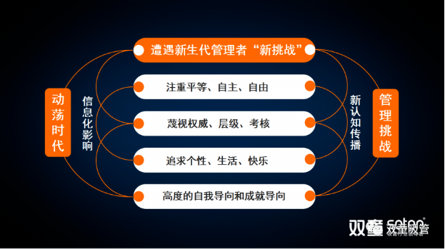 • 規劃者:管理者要善于通過(guò)目標設立、規則訂立和激勵兌現的方式,盡可能的滿(mǎn)足新生代員工的心理訴求和價(jià)值訴求,從而實(shí)現企業(yè)目標與成員個(gè)人目標的高度契合,以激發(fā)出他們的巨大潛能和創(chuàng )造。