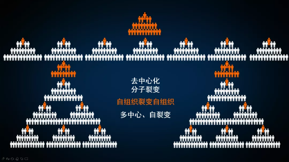 樓老師給大家提出了一個(gè)新的方案:由自組織分裂出自組織—實(shí)現子代事業(yè)部的分子裂變。鼓勵創(chuàng )業(yè)體自身裂變出創(chuàng )業(yè)體事業(yè)部控股的創(chuàng )業(yè)項目,形成新的“自組織集群”,形成各個(gè)創(chuàng )業(yè)體裂變后的自中心和多中心,從而形成雙童多層架構的創(chuàng )業(yè)矩陣!