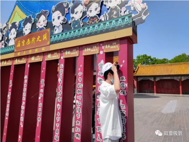 噔噔蹬!“雙童”人成功抵達第一站—明清宮苑。聽(tīng)說(shuō),這里是按照北京故宮1:1的比例建造的喲。和清宮劇中一模一樣!各種熟悉場(chǎng)景,宮廷感十足!拍照也好看??!
