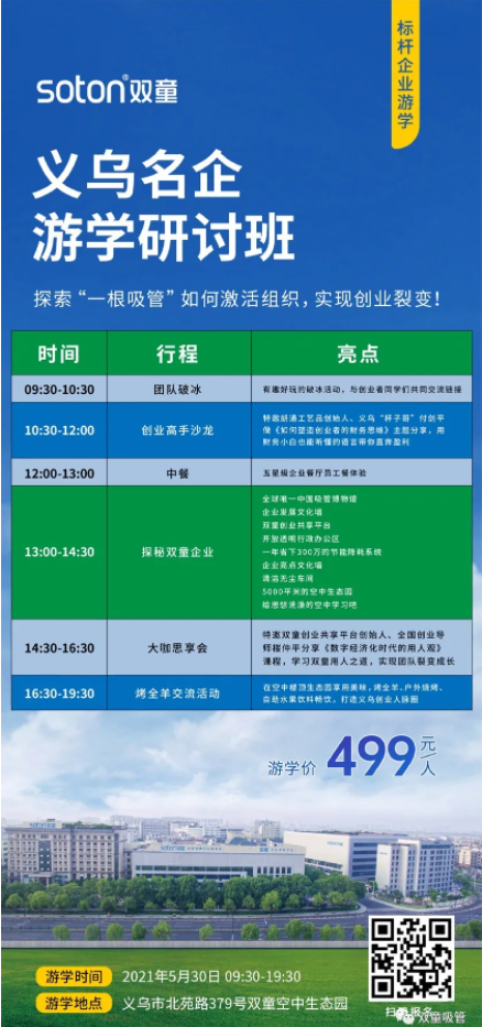 不知道,看完這篇文章 大家是不是也想來(lái)一次這樣的燒烤學(xué)習之旅呢! 5月30日,雙童499元/人游學(xué)班 樓仲平專(zhuān)題課分享+雙童游學(xué)+五星員工餐體驗+烤全羊交流會(huì ) 快來(lái)掃碼報名吧!