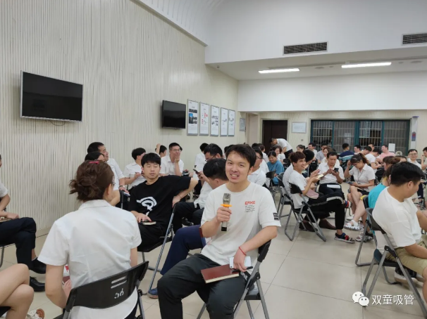 在小組互動(dòng)結束后,學(xué)習會(huì )迎來(lái)了最后一個(gè)環(huán)節,總經(jīng)理李二橋鼓勵在座的員工們積極學(xué)習,提升認知共同學(xué)習成長(cháng),還對大家承諾:“雙童”的學(xué)習會(huì )絕不搞形式,打破籬笆,平等互動(dòng),絕不拖堂!