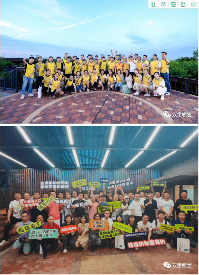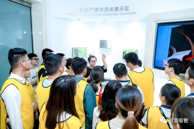 用餐后,同學(xué)們休息片刻便開(kāi)始了“雙童”游學(xué)之旅。從全球唯一的中國吸管博物館、企業(yè)文化墻、創(chuàng )業(yè)共享平臺、行政辦公區、節能降耗系統、無(wú)塵車(chē)間到五千平米的空中生態(tài)園,一個(gè)多小時(shí)的游學(xué)之旅帶領(lǐng)大家深度感受了“雙童”的企業(yè)文化。