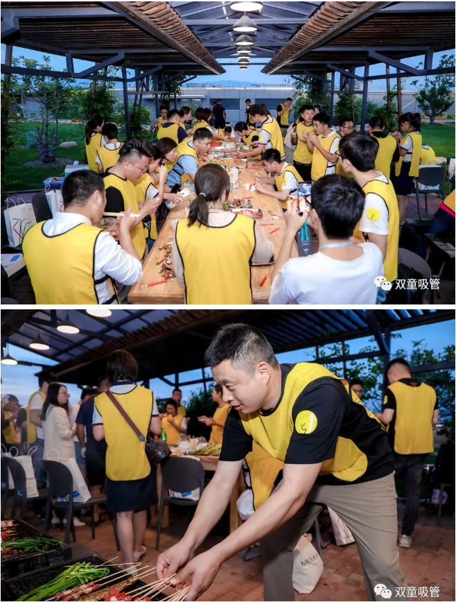 夜幕降臨,課程收尾后,大家來(lái)到“雙童”空中生態(tài)園的燒烤平臺,開(kāi)始了期待已久的烤全羊PARTY。伴隨著(zhù)生態(tài)園里陣陣花香,大家邊吃邊聊,相處甚是融洽!