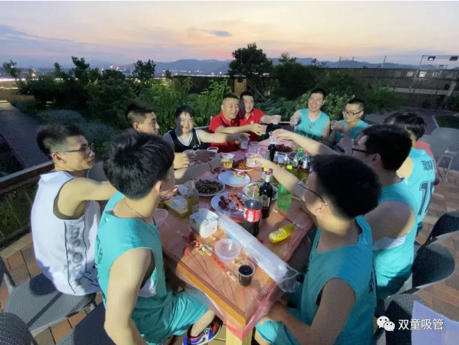籃球賽結束后,中國小商品城日用百貨商會(huì )的隊員以及“雙童”的隊員在“雙童”七樓空中生態(tài)園共同參加了小龍蝦燒烤Party,啤酒、美食的助攻,進(jìn)一步加深了兩隊的感情!