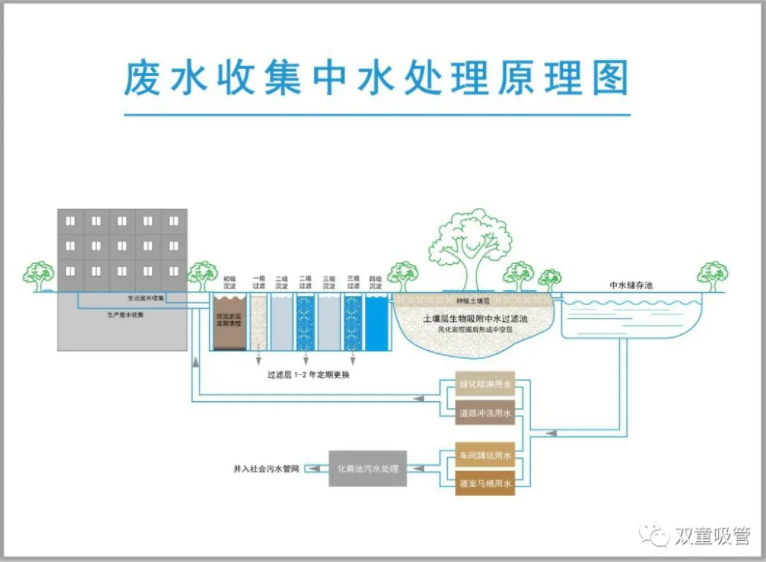 “雙童”二期新廠(chǎng)區:廢水收集中水處理原理圖