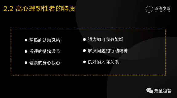 彭凱平老師提到,有這六個(gè)重要的特質(zhì),那么這個(gè)人一定具備極高的心理韌性:積極的認知風(fēng)格、強大的自我效能感、樂(lè )觀(guān)的情緒調節、解決問(wèn)題的行動(dòng)精神、健康的身心狀態(tài)和良好的人際關(guān)系。