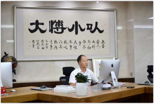樓仲平的辦公室里掛著(zhù)一幅書(shū)法作品,“以小博大”四個(gè)大字的下面,還添了幾列小字上善若水,水善利萬(wàn)物而不爭。夫唯不爭,故天下莫能與之爭。