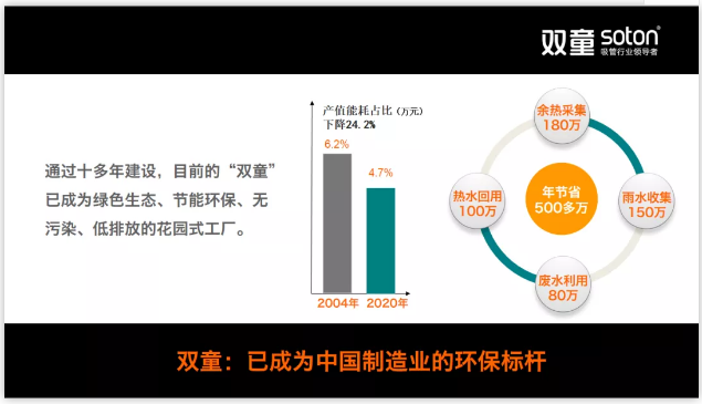 早在2004年,樓仲平就受日式企業(yè)科學(xué)管理的啟發(fā),引進(jìn)了雨水收集回用系統、廢水處理回用系統、設備余熱水循環(huán)利用系統、設備余熱采集循環(huán)系統,2005年,“雙童”就開(kāi)始采用垃圾分類(lèi)循環(huán)系統。