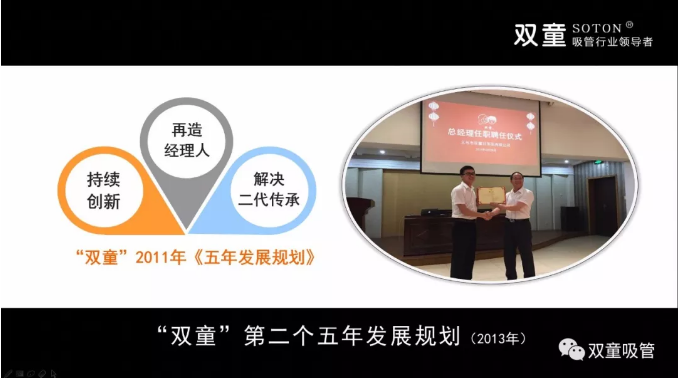 2011年9月,“雙童”又提出了第二個(gè)五年發(fā)展規劃,明確“持續創(chuàng )新”作為主要工作,要提高新品產(chǎn)出、提高新品比例、獲取知識產(chǎn)權,進(jìn)一步推動(dòng)企業(yè)的創(chuàng )新工作。