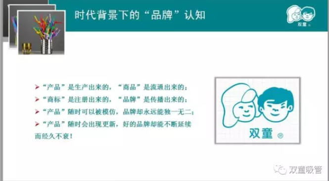 這篇文章雖然時(shí)隔十年,今天讀來(lái),仍是字字珠璣。通過(guò)樓總的闡述,我們能發(fā)現:“雙童”在品牌塑造之路上,雖然“舍棄”了很多,但是“得到”的更多!“雙童”27年的堅持,打破了吸管這類(lèi)產(chǎn)品不能做品牌的偏見(jiàn),更是向世人證明:在創(chuàng )業(yè)道路上,重要的不是你選擇做什么,而是你選擇怎么做。謹用此文與所有塑造品牌道路上的創(chuàng )業(yè)者們共勉!