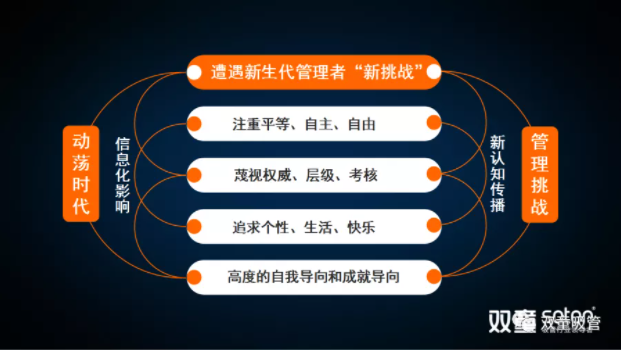 • 規劃者:管理者要善于通過(guò)目標設立、規則訂立和激勵兌現的方式,盡可能的滿(mǎn)足新生代員工的心理訴求和價(jià)值訴求,從而實(shí)現企業(yè)目標與成員個(gè)人目標的高度契合,以激發(fā)出他們的巨大潛能和創(chuàng )造。