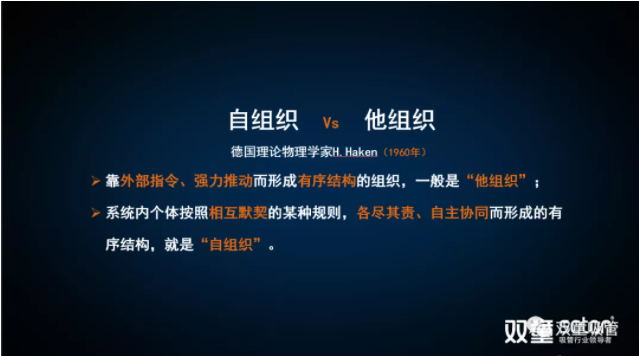 樓老師的分享先給出了答案:“雙童”從2016年之后組織變革的方向是“回歸自組織”:通過(guò)組織結構的設計,讓核心成員對自己所處的工作認知從“他組織”(他的組織)轉變到“自組織”(我的組織)。