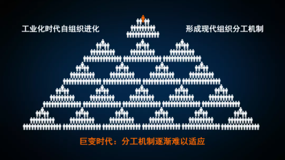 數字化環(huán)境下“人”的改變導致信息獲取的方式持續改變,信息的扁平化傳播讓每個(gè)人都能獲得更有效率的信息獲取方式,信息的非對稱(chēng)環(huán)境幾乎被消滅,組織成員的心智急速提升,認知方式劇烈改變,原有的工業(yè)時(shí)代分工管理機制逐漸難以被成員所接受,經(jīng)歷百年完善的分工管理機制在數字化環(huán)境下逐漸難以適應巨變環(huán)境帶來(lái)的持續挑戰。