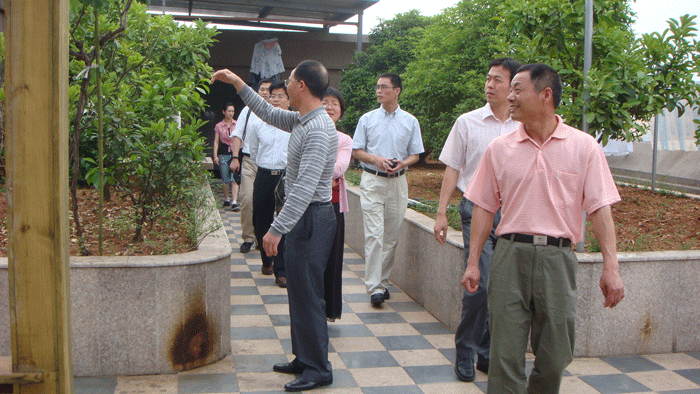 上圖:董事長(cháng)樓仲平陪同余勁松副司長(cháng)一行參觀(guān)考察屋頂花園