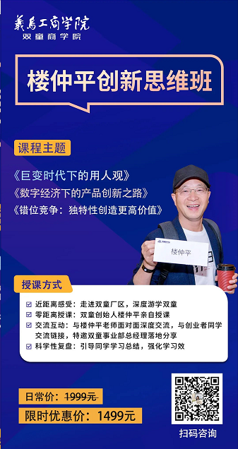 @義烏創(chuàng )業(yè)者 【樓仲平創(chuàng )新思維班】每月火熱開(kāi)班!相約雙童商學(xué)院,不見(jiàn)不散!