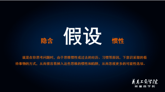 此外他還強調:“我們需要小心隱含假設的思維慣性,用全新的思路打開(kāi)全新的世界,尋找顧客未被滿(mǎn)足的需求,從而占領(lǐng)市場(chǎng),發(fā)揮潛能。數字經(jīng)濟下,所有產(chǎn)業(yè)的所有產(chǎn)品都值得我們重新做一遍。” 何為“隱含假設” 在課程中,樓仲平還通過(guò)兩個(gè)思維游戲打開(kāi)了同學(xué)們對于產(chǎn)品創(chuàng )新的全新思路,最后以“雙童”為例,講述如何破除隱含假設: