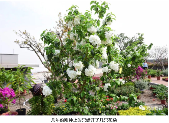 雙童:屋頂花園的繡球花開(kāi)正當時(shí)!一簇簇潔白花朵、連成一片猶如美麗的云彩!