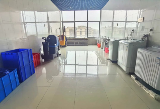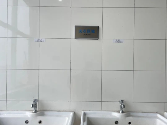 首先,是清洗場(chǎng)所?!半p童”的工服洗衣房就和車(chē)間清洗間配置在一起,既聯(lián)通車(chē)間,提高工服來(lái)回運送的效率,又能夠保持相對獨立,不影響生產(chǎn)。這里的洗衣工具齊全,既有機洗區域,也有供斷電情況使用的手洗池。