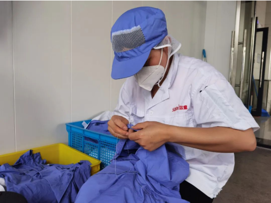 除了清洗,洗衣工也要對工服的質(zhì)量進(jìn)行檢查,確保工服的穿著(zhù)感受良好。如果有掉扣子的情況,洗衣工會(huì )及時(shí)進(jìn)行縫補;要是工服出現了大面積損壞,則會(huì )進(jìn)行記錄,將其進(jìn)行報損并統一處理成清洗抹布。