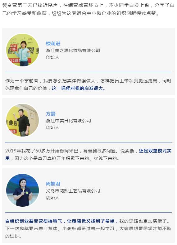 學(xué)員為創(chuàng )業(yè)裂變營(yíng)“代言”