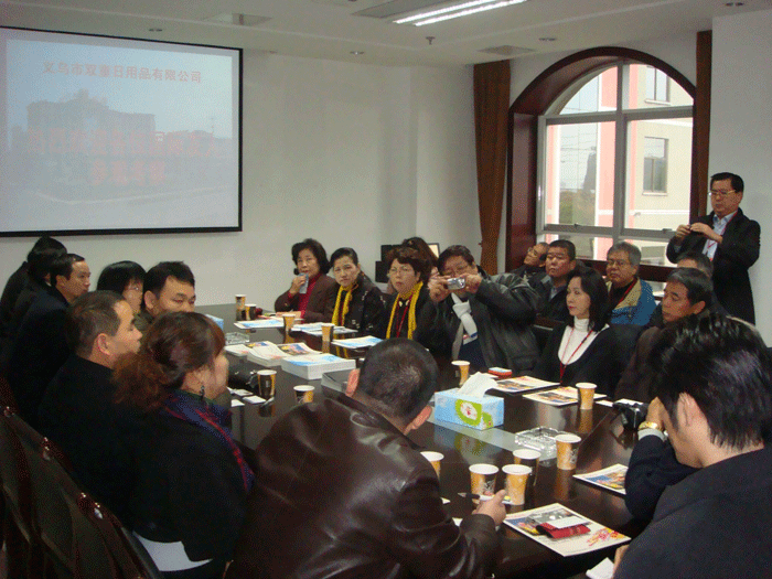 今天上午10:05分,在義烏市對外經(jīng)濟貿易合作局副局長(cháng)姚咸明的陪同下,日本沖繩縣考察團一行到我司參觀(guān)考察,副總經(jīng)理張國俊、張洪潮出席接待并陪同考察。
